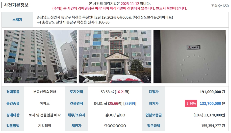 | 2025타경468 천안시 신방한라비발디 아파트 경매분석 (0) | 2025.11.13 |